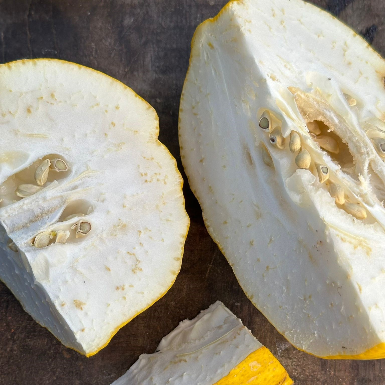 האתרוג התימני בעל קליפה עבה, הרבה בשר לבן, מעט בקבוקוני מיץ, ונטול פיטם.