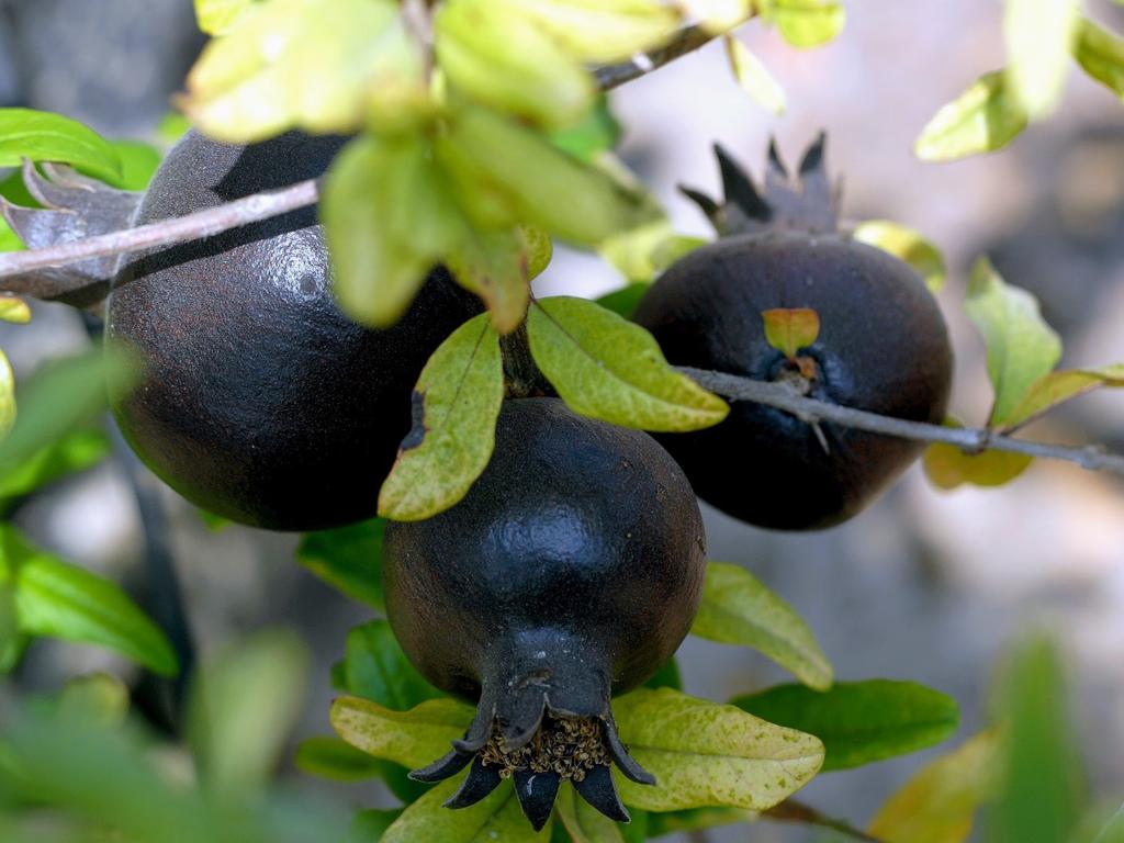פירות הרימון השחור מתוקים וטעימים מאוד, הם האחרונים שמבשילים, בגוון סגול כהה-שחור, ומבפנים גרגרים אדומים בהירים. צבע הקליפה והעובי שלה מגינים על הפרי מפני זחל כחליל הרימון, אז אין צורך לעטוף אותו בשקיות או להשקיע עבודה מיוחדת כדי לאכול רימונים ישר מהעץ.